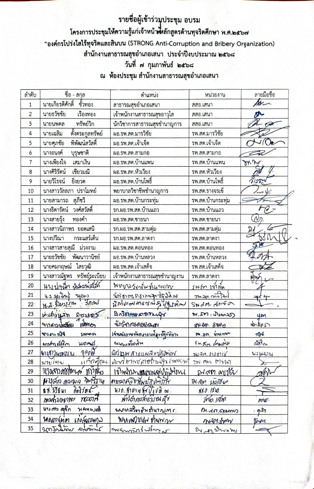 รายชื่อผู้เข้ารับการอบรม
