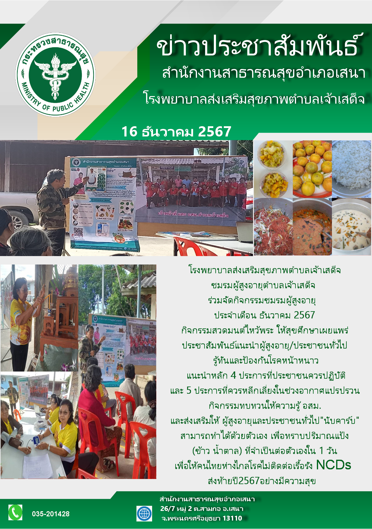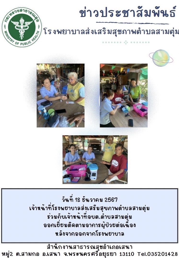 พฤศจิกายน 2557 พัฒนาโดย นายคนอง ทองศรี สำนักงานสาธารณสุขอำเภอเสนา ถนนแขวัฒนะ ตำบลสามกอ อำเภอเสนา จังหวัดพระนครศรีอยุธยา 13110 โทร. 0 3520 1428 โทรสาร 0 3520 1428 ต่อ 207 E-mail sena_015@yahoo.com